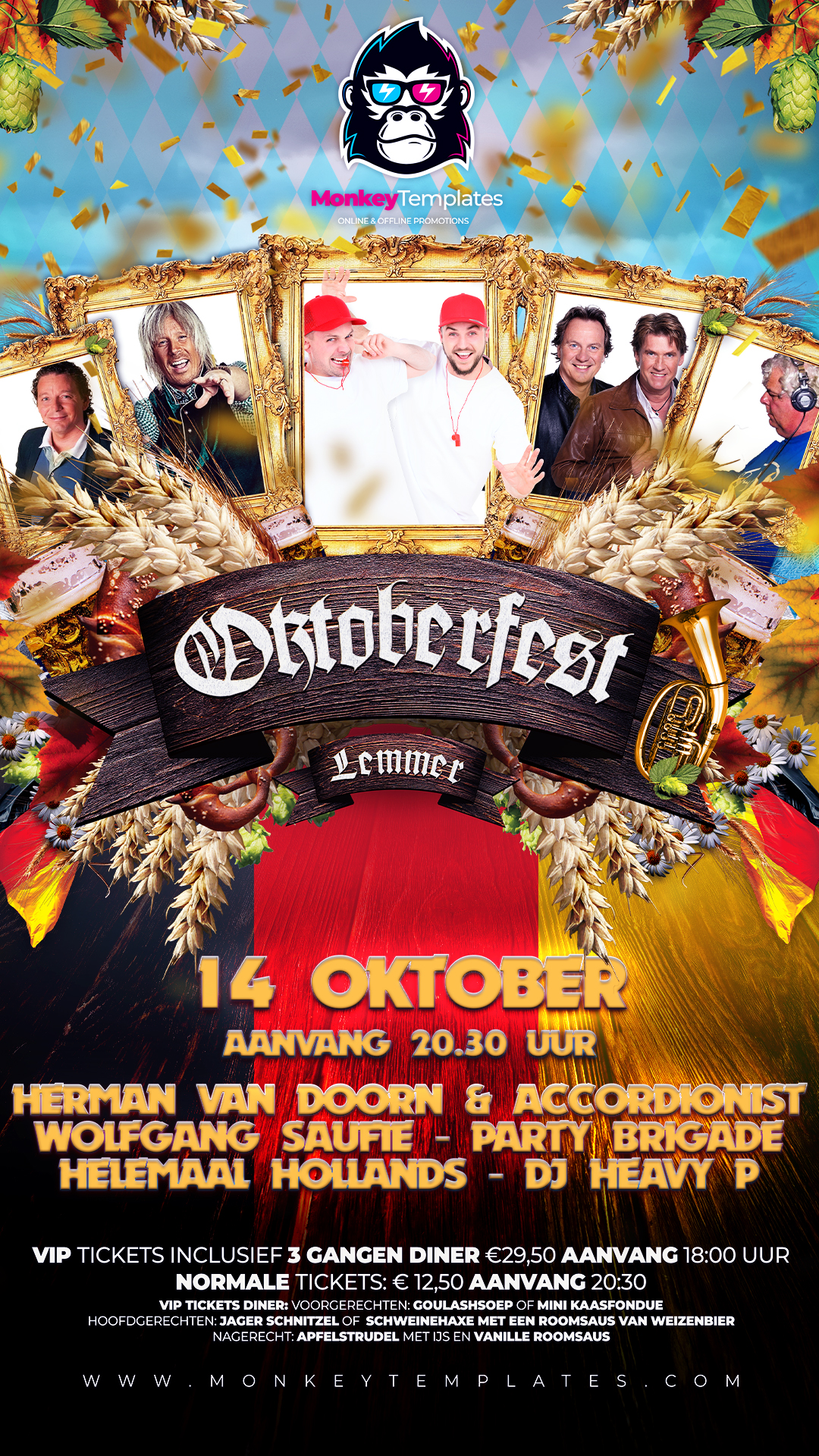Begin met het promoten met: MonkeyTemplate 2404 – Totale Template met eigen logo’s, teksten, artiesten en eventuele acties voor €44,95 ex btw
